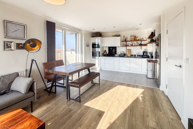 The accommodation comprises an entrance hallway allowing access to two double bedrooms with fitted wardrobes, a modern family bathroom, and a spacious lounge. Completing the property is a stylish kitchen / dining room featuring a range of fitted units with integrated appliances, a breakfast bar as well as room for a dining table, and access to a private garden. The property further benefits from residents parking and a garage in a nearby block.