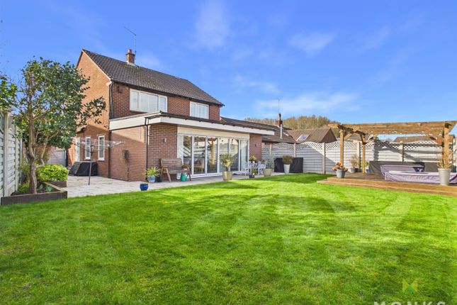 A side lawn has the oil tank and lpg gas cylinder. To the front there is a level lawn and raised patio overlooking the surrounding countryside and the village.