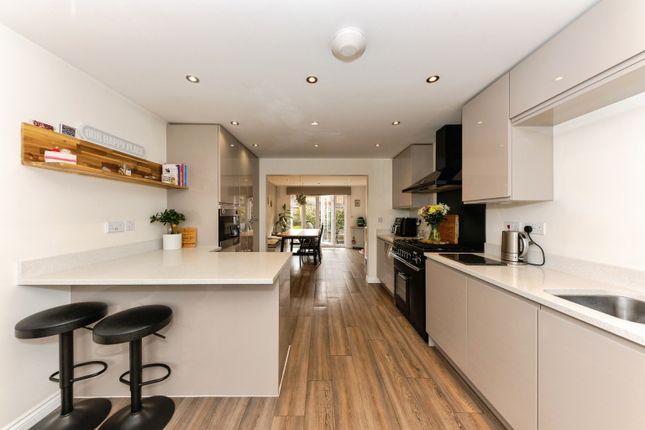 The kitchen has a window to the side elevation, a tiled floor and a modern fitted kitchen with a one and a half sink and drainer, duel fuel Range and a dish washer.