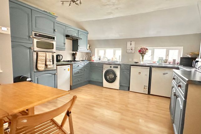 Featuring a range of matching wall and base units, inset single sink & drainer unit, plumbing for a washing machine and dishwasher, gas cooker with four ring hob unit and extractor fan above, double-glazed door leading into the garden and separate doorway leading to the shower room.