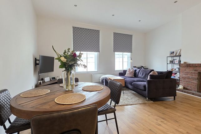 The thoughtfully designed and modern living space comprises a tiled entrance hallway leading to a spacious open-plan lounge, diner, and fitted kitchen. The living area is enhanced by large sash windows, while the kitchen boasts a contemporary design, complete with a breakfast bar, marble and resin worktops, ample cabinetry, and integrated appliances. The apartment also features a luxury four-piece family bathroom with a separate bath and shower, and two generously sized bedrooms, with built-in storage in the master.