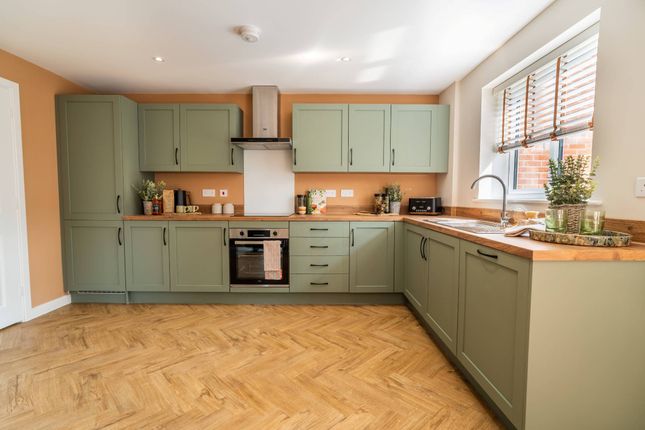 Having a range of shaker cabinets in contrasting colours comprising wall cupboards, base units and drawers with polished wood effect work surfaces above with matching upstands. Inset 1 1/2 bowl ceramic sink with drainer and chrome swan neck mixer tap. Integrated single electric oven, four ring electric hob and stainless steel extractor hood above. Plumbing and space for both a dishwasher and washing machine and space for a tumble dryer and space for a fridge/freezer. Loft hatch, double glazed window to the front elevation, window to the rear elevation and a stable door leads out to the rear garden.
