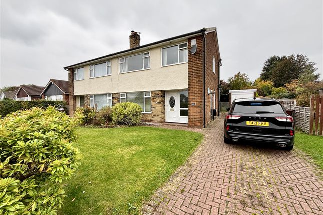 Outside, the property occupies a sizeable plot and set well back from the main road to the front is a sizeable garden laid mainly to lawn with planted borders, a long driveway provides off street parking for multiple cars and leads to a single detached garage which has an up and over door, and a window to the side. To the rear of the property and being a particular feature, the garden abuts farmers’ fields which offer beautiful and far-reaching views. The neat garden is laid mainly to lawn with a sizeable crazy paved and flagged patio area, perfect for summer entertaining and taking in the view.
