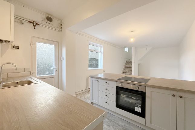 Fitted with a range of matching wall and base units, stainless steel sink and drainer with a mixer tap, integrated electric hob, oven and cooker hood, space and plumbing for a washing machine, integrated fridge, splash backs and wood flooring.