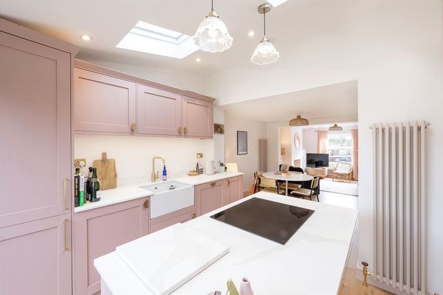 Double glazed bay window to front aspect. Fitted with a range of wall-mounted and floor standing units with work surface over, hob with extractor fan over, integrated dishwasher, plumbing for washing machine, integrated fridge freezer.