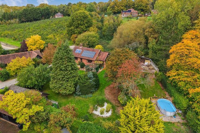 Charming Kentish 'chocolate box' Grade II listed attached cottage, set within large gardens with beautiful panoramic views across the Teise valley. 3 bedrooms set over 3 floors, superbly presented and retaining a wealth of original features. Set within an area of outstanding natural beauty in the Garden of England, just over a mile from the picturesque village of Goudhurst, this pretty Grade II listed cottage is believed to date back to around 1650. Within well-kept mature gardens, it benefits from a single English Heritage Timber Garage and log store, large workshop and oil fired central heating.