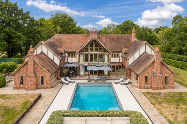 The gardens and grounds are a particular highlight. Approached from the lane through an attractive tree-lined 100 metre drive that leads to the house. Views over the north Surrey hills and open aspects create a wonderful feeling of seclusion and space. Lying mainly to the south and west of the house the formal garden is ideally suited for entertaining with the Swimming pool and tennis court close by. A clubhouse with bar and decking has recently been added to the pool area and the pool totally refurbished by Lagoon Pools. Beyond the formal area the remainder of the garden extends to the southern boundary and is laid mainly to lawn with spring flowers and a variety of mature trees and shrubs. The remaining grounds to the north and east are arranged as post and rail fenced paddocks or open pasture. Also, to the north, there is a pretty area of light woodland with a bluebell wood. A short