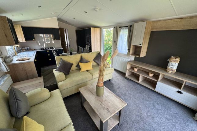 Living/Dining Room - Offering generous space for furniture for both living and dining, with a double glazed window, carpeted flooring, a feature fireplace housing an electric fire with a decorative surround, and an archway leading to the kitchen.