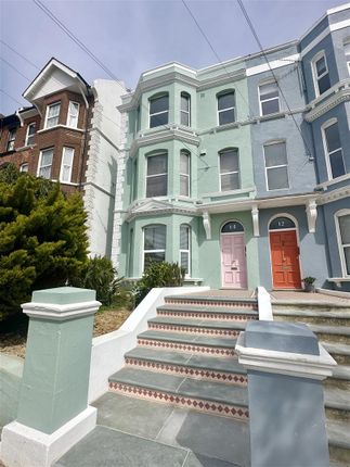 Stunning two bedroom apartment set in a prime Warrior Square location, just metres from the beach and a short stroll from independent shops, eateries and a mainline railway station with connections to London. Set on the top floor of this period residence, the accommodation here is arranged as a bright open plan living space which enjoys a front aspect with views over Warrior Gardens to the sea, plus a feature fireplace. The modern fitted kitchen provides ample storage and benefits from a handy island/breakfast bar creating the perfect social space. There are two bedrooms both enjoying a rear aspect, together with a family bathroom with a bath and shower over. Being sold with a share of freehold this fantastic property would make the perfect first time home or seaside retreat.