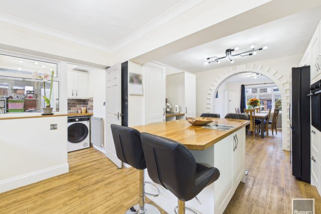 The sitting room is a bright and comfortable space, with large sliding doors that open straight onto the garden-great for enjoying the view or opening up the space in summer. The kitchen and dining area is modern and practical, fitted with sleek cabinets, integrated appliances, and lots of counter space for cooking. Next to it is a useful utility room and a ground-floor WC, which adds convenience for busy households.