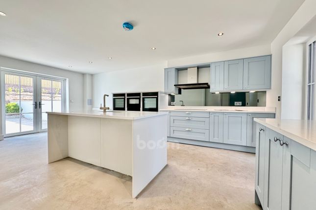 A feature staircase rises from the living space to an elevated galleried sitting area, ideal as a quiet reading nook, office space or an additional lounge area from which to enjoy the elevated views. The kitchen is designed to be in keeping with the home’s rural setting, with country style quality floor and wall mounted units and integrated appliances along with room for a breakfast table. There is a separate utility room which sits just off the kitchen, providing further storage with direct access to the rear courtyard.