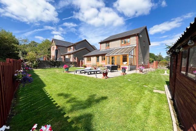 To the outside, the property sits in approximately 4.082 acres of grounds and woodland. The property is approached by a private gated track off a private road from the village. The garden features a Treehouse (with electricity supply) with rope bridge, large pond area, gardens and patio area. To the rear of the property the garden includes a polytunnel, fruit cage and orchard. Banked garden area housing the solar panels. The remaining grounds are mainly woodlands, an interesting feature of which a disused lime kiln and quarry is located. There is also a timber clad storage container with separate W/C and a Store which houses the automatically controlled diesel generator and provides storage for biomass fuel (wood pellets) etc.