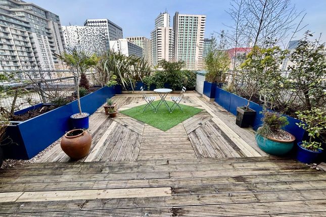 The private terrace looks out from the rear of the apartment with plenty of space for furniture to sit and look over the Birmingham skyline.