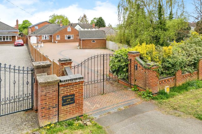 Externally, the rear garden is laid to lawn with a patio dining and seating area, ideal for outdoor entertaining. The front of the property features electric gates opening onto a spacious driveway, suitable for multiple vehicles.