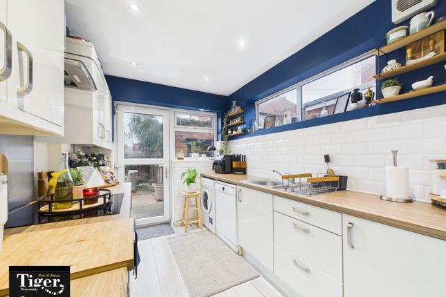 The second bedroom, also located at the front, is generously sized with a large UPVC double-glazed window and radiator, while the third bedroom, which faces the rear, enjoys a peaceful outlook over the garden.