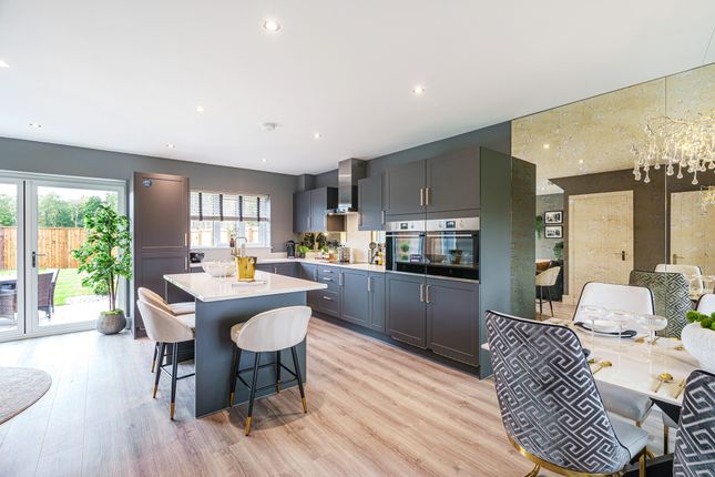 15' 9" x 14' 0" (4.80m x 4.27m) Fitted kitchen incorporating a one and a half bowl sink unit with mixer tap, electric oven and grill with four ring electric hob and extractor hood above, integrated dishwasher, integrated wine cooler, centre island with breakfast bar and integrated fridge and freezer, timber framed window to the side, radiator, wood effect laminate flooring and opening to the dining lounge.