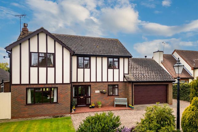 The property is set back from the roadside via a brick paved in and out driveway, providing dual access and off street parking for multiple vehicles, with sweeping borders and a low boundary wall. Access leads to both the integral garage and the standalone double garage with and electric up and over double garage door. Gates lead through into a deceptively large West facing rear garden, laid to lawn but with a feature paved patio area and further elevated decked patio with Pergola. With the rear being enclosed by a mixture of fenced and walled boundaries, with mature trees, planted borders and facing out over opens fields at the rear so as to not be overlooked or overshadowed.