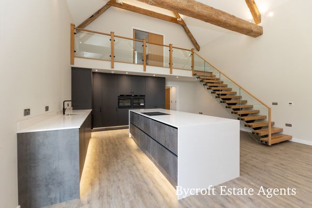 Kitchen 19' 5" max x 20' 9" max (5.92m x 6.32m) superb newly fitted L-shaped kitchen/ breakfast room; vaulted ceilings; light lanterns; side window feature; bespoke designed sliding pocket door; granite worktops; excellent range of base, cupboards and drawers; space for upright fridge and freezer; range oven with light and extractor; island/breakfast bar with cupboards and drawers;1 bowl sink with mixer tap; range of wall units; radiator.