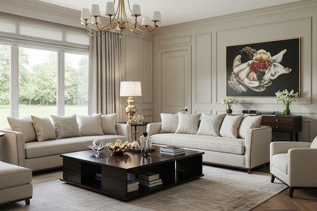 Bright reception room with dining space