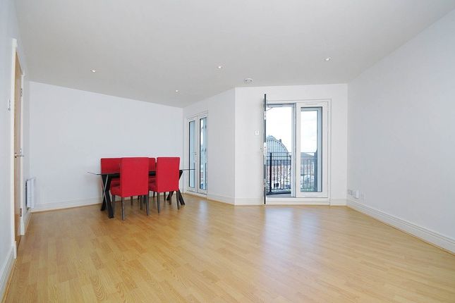 Situated on the fourth floor, the flat features a spacious and bright open-plan kitchen/reception area, complete with sleek, modern cabinetry, floor and wall-mounted units, and ample space for a dining table. The living area includes bespoke built-in shelving and a TV unit, seamlessly combining functionality with design. Patio doors lead to a private, wrap around south facing balcony, ideal for entertaining or enjoying al-fresco dining in the sun.