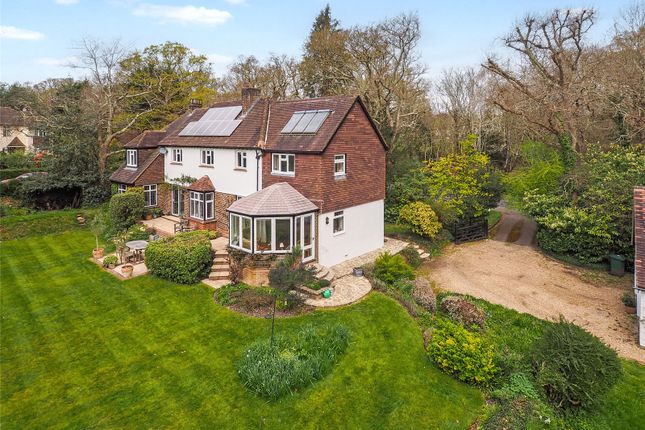 Reception rooms lie either side of the entrance hall. A triple aspect sitting room is over 22 ft in length with a light beamed ceiling, attractive fireplace fitted with wood burning stove and glazed door to the terrace and garden. A cosy snug provides a tranquil space away from the main living areas or an ideal space for those wishing to work from home. Doors from both rooms open on to the dining room adjacent to the kitchen with matching cupboards, hard wood work surfaces, induction hob and space for various appliances. The adjacent utility room keeps white goods away from the main living areas and includes further cupboards fitted in the same style with hard wood work surfaces and an eye level oven / grill. There is also a large cloakroom with shower, ideal for those returning from muddy dog walks or sailing. A broad staircase leads to the first floor which includes three bedrooms all with fitted wardrobes, additional home office / nursery and a generous family bathroom.