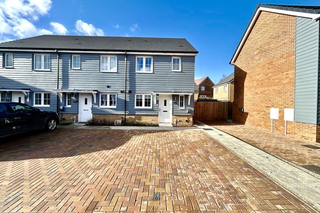 The front door opens into a nicely proportioned sitting room with bow window to the front of the property and fireplace with a tiled hearth and wood burner. The flooring is laid to wood effect laminate. Open trend staircase with recess underneath rises to the first door and paned glass door opens to a bright and room combined kitchen and dining room. This has two windows to the side and part glazed door to the side opening to a covered area and the courtyard garden. The kitchen is fitted with a range of contemporary soft closing handless units consisting of floor cupboards, separate drawer units and eye level cupboards. There is a generous amount of oak work surfaces with matching upstand and stainless steel sink and drainer with swan neck mixer tap. Included is a built in electric oven and gas hob with tiled splash back and extractor hood above plus space and plumbing for a washing machine and recess for a fridge/freezer. The floor is laid to tile. Also on the ground floor is a useful WC.