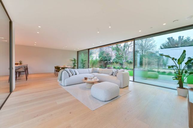The ground floor offers extensive living and entertaining space, including a beautifully appointed kitchen with integrated appliances, a secondary prep kitchen, a formal dining room, and three spacious reception rooms. The principal reception room is accessible both internally and via a second grand reception hall, providing a flexible layout ideal for hosting guests. Three ground-floor WCs and a shower room enhance convenience.