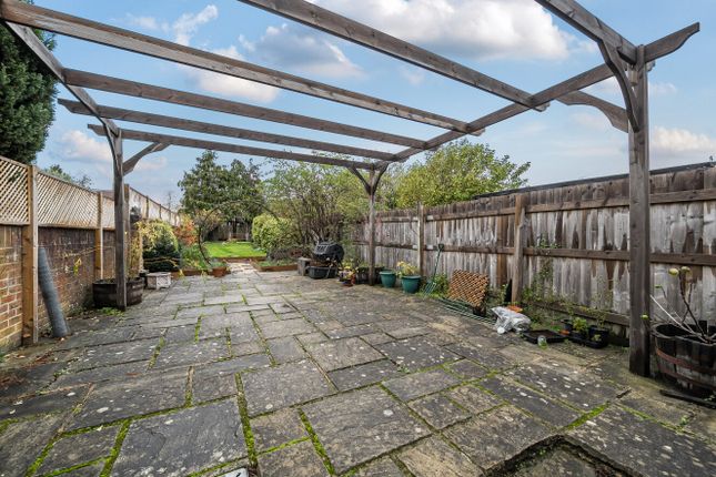 Driveway for parking with additional parking space, patio areas with range of shrubs and flowers, secluded garden area laid to astro-turf and bordered by hedging.