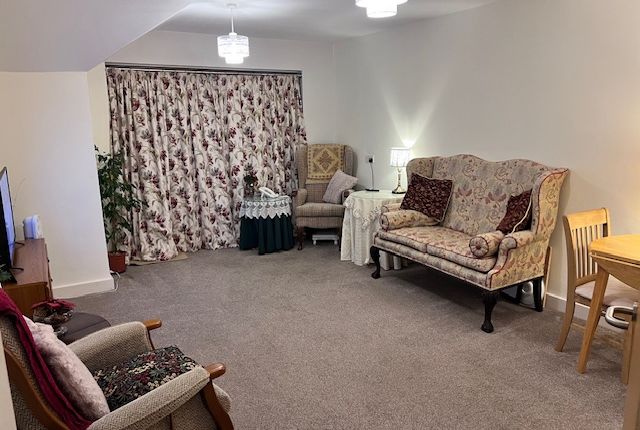 Living/Bedroom 14' x 13' 11" narrowing to 13' ( 4.27m x 4.24m narrowing to 3.96m )