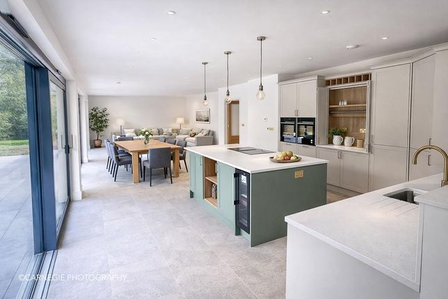 From an elevated position this 1930s bungalow has been extended by the current owner to provide family accommodation comprising, an entrance hall, cloakroom, sitting room (with southerly aspect over the grounds), kitchen, utility room, large family and dining room (double aspect, with patio doors to the garden), three bedrooms, family bathroom and stairs to eaves playroom, games room and store.