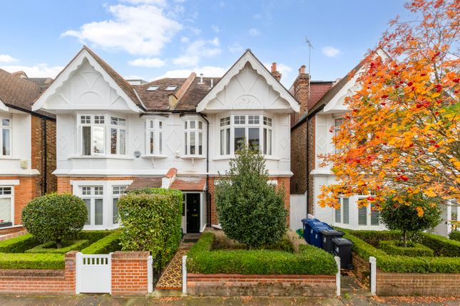 The first floor hosts an elegant principal bedroom suite with built-in wardrobes and an en-suite bathroom finished to a high standard. The remaining bedrooms are all generous doubles, allowing flexible use for guests, children, or home working. Two further bathrooms serve the upper levels, each appointed with contemporary fittings that complement the period style of the home.
