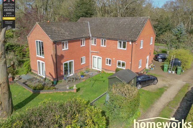 Guide Price £600,000 - £625,000. No chain. Enjoying an elevated position with open green space views to front, this exceptional semi-detached barn was converted in 2007, creating a unique living experience of over 3000 Sq. Ft (stms), and a low maintenance courtyard garden. With a stunning blend of modern convenience and historic charm, adorned with character features that will take your breath away, a range of exposed timber beams, brickwork, and vaulted ceilings create an ambience of rustic elegance. The five-bar gated driveway welcomes you home each day, leading to convenient storage at the front. The grandeur continues inside with double doors opening into a 26' galleried entrance, with underfloor heating to both the ground and first floor. Spiral stairs lead up, whilst large windows draw your eye to the courtyard. Setting the tone for the luxury that awaits, the kitchen is a chef's dream, featuring corian surfaces, walk-in pantry, space for a range style cooker and a boiling water tap, while the 23' sitting room showcases a grand inglenook fireplace and multi-fuel burner for cosy evenings. Additionally, the property offers separate study and snug rooms perfect for work or relaxation, along with a utility room and W.C. Upstairs, four spacious double en suite bedrooms provide comfort and privacy for the whole family.