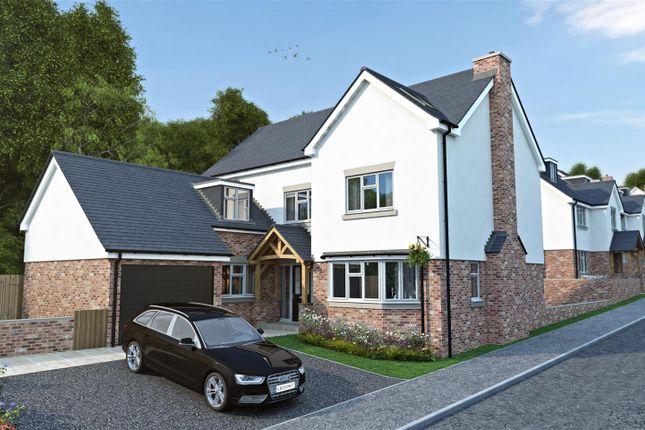 To the front, a gravelled drive comfortably accommodates four cars, leading to the integrated garage.