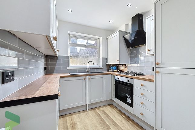 UPVC double glazed windows, wall units, laminate work surfaces, plumbing for washing machine, tiled flooring and UPVC double glazed door to rear.