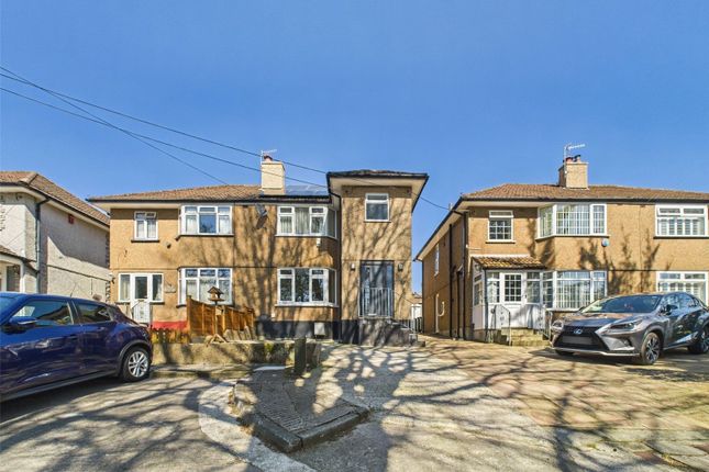 From the main hallway, carpeted stairs ascend to the first-floor landing. Bedroom two is a generous double with a window to the front elevation and built-in storage. Bedroom three is also a spacious double room with a window to the front and further built-in storage cupboards. The shower room is fitted with a matching white three-piece suite comprising a low-level WC, pedestal wash hand basin, a tiled shower cubicle with a direct-feed shower, and tile-effect flooring.