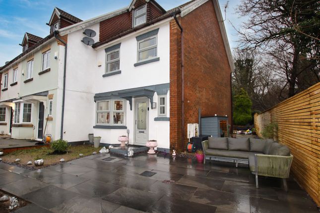 The property sits on an excellent-sized plot with brick-laid patio, lawned gardens, mature shrubs, and trees. There is a private driveway to the side, providing off-road parking for several vehicles, and a garden storage shed.