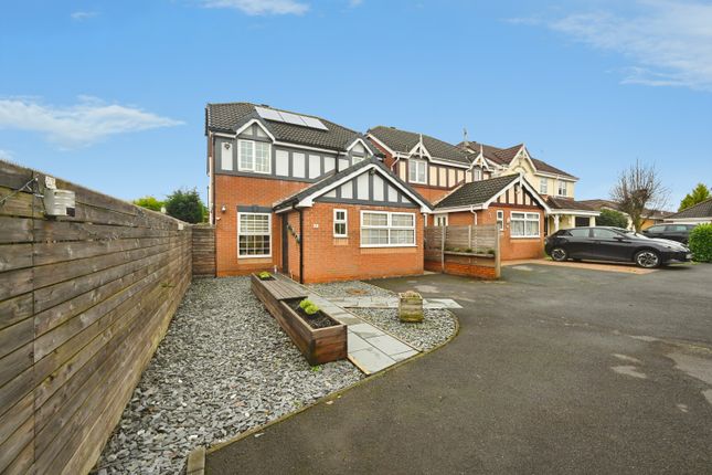 A welcoming and spacious L-shaped hallway leads to all rooms, creating an immediate sense of openness. The home features a modern kitchen/diner designed for everyday convenience and entertaining, with ample space for dining and seamless flow throughout the property. The bright lounge, complete with patio doors opening onto the garden and a contemporary feature fire, provides a stylish and relaxing living space.
