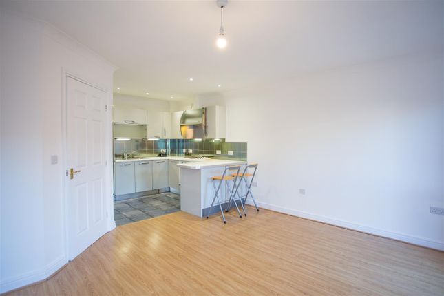 The apartment is accessed via a welcoming entrance hall, providing a practical space for coats and shoes and leading to all principal rooms. The heart of the home is the spacious open-plan lounge/diner and fitted kitchen, designed to offer flexibility and modern living. The lounge area provides ample room for seating and dining furniture, with a Juliette balcony allowing natural light to fill the room while offering a pleasant outlook. The adjoining kitchen is fitted with a range of contemporary units, worktops, and integrated appliances, creating a functional and stylish space for everyday cooking.