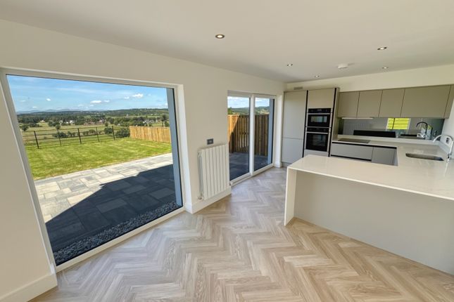 Outside, the sloping plot has been shaped with sustainability in mind, using gabion retaining walls and naturalistic planting of heathers, ferns and young broadleaf trees. Layered paths weave through the terraces, leading to the expansive brick patio with a fire pit oriented directly towards the sweeping loch and mountain panorama.