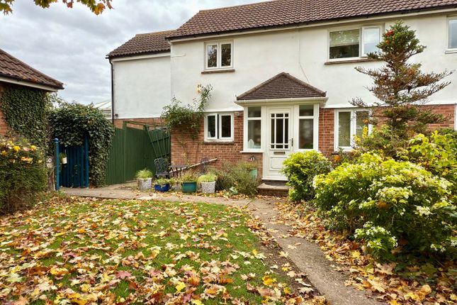 To the front of the property, a patio pathway leads to the front door with the front garden area laid to lawn. A side access path and driveway leads to parking for three vehicles.