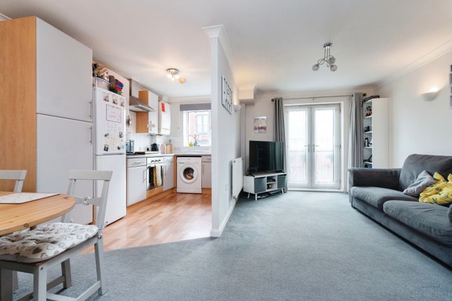 The property features an open-plan living room and kitchen, two bedrooms and two bathrooms.