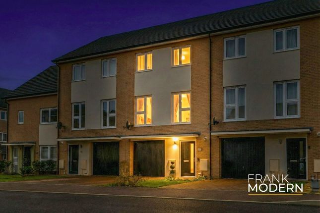 This impressive four-bedroom townhouse offers spacious and versatile living across three floors, perfect for modern family life. The ground floor features a welcoming entrance hall, a stylish kitchen, a convenient downstairs WC, and a generous lounge at the rear with doors opening to the garden. The first floor provides two well-proportioned bedrooms, including one with access to a private balcony overlooking beautiful views of the lake, and a family bathroom. On the second floor, you’ll find two further bedrooms, including a luxurious main bedroom with an en-suite shower room, plus an additional double bedroom. Outside, the property benefits from a private rear garden, garage, and allocated parking, providing both practicality and comfort. This home is ideal for families seeking space and flexibility in a desirable location.