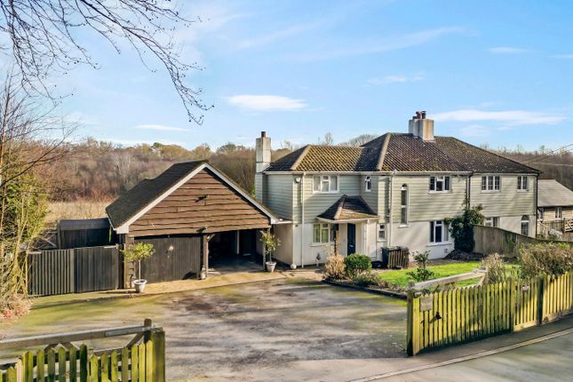The property occupies a particularly peaceful position at the end of the cul-de-sac. A driveway runs alongside the house, providing access to the single garage with traditional doors.
