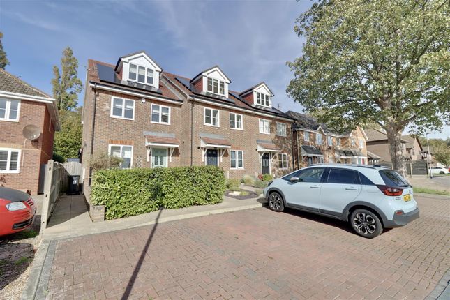 The front garden is laid to lawn with a side driveway providing parking and giving access to the attached garage. The rear garden is mainly laid to lawn with patio area, scattered shrubs, plants and trees.