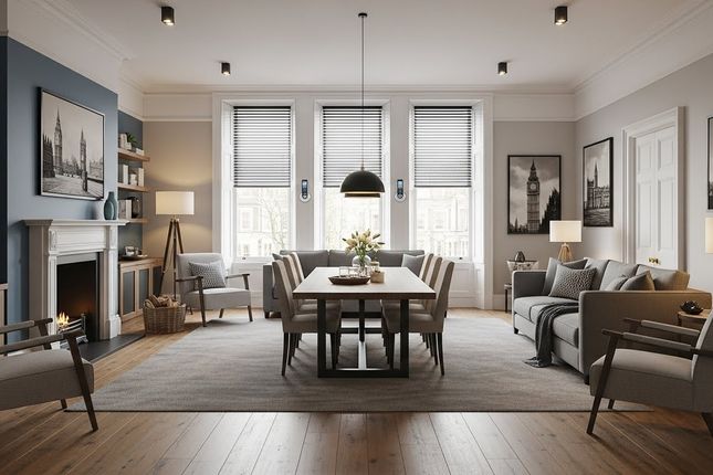 Set on the blue-plaqued site of London’s first film studio, this striking brick-built building features clean architectural lines and a confident street presence. Inside, the apartment is positioned on the third floor, where the front door opens into a wide and welcoming hallway with high ceilings, warm wooden flooring and crisp, modern finishes that naturally lead through to the main living space.