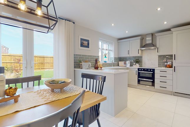 Fitted with a matching range of base and eye level units with worktop space over, sink unit with mixer tap, wall mounted boiler, plumbing for slimline dishwasher, plumbing for washing machine, space for fridge/freezer, fitted eye level electric oven, built-in four ring gas hob with pull out extractor hood over, uPVC double glazed window, tiled flooring, TV point, storage cupboard with hot water cylinder, uPVC double glazed door to Driveway.