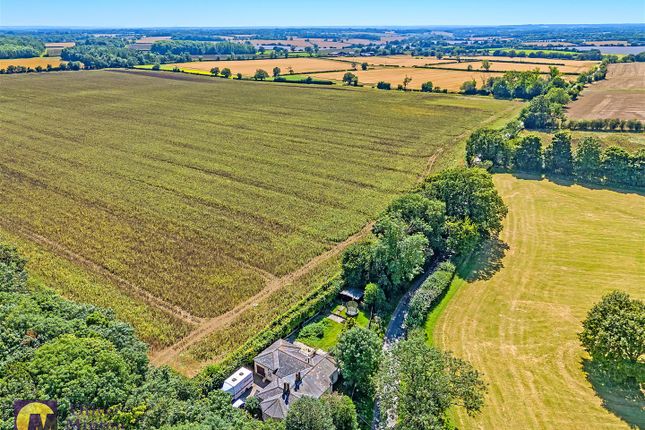 Externally, the property is set back behind a driveway providing parking for several vehicles. The rear garden is generous in size, highly private and laid mainly to lawn with established planting. A terrace directly off the house offers an ideal space for outdoor dining, while a further seating area to the rear of the garden takes full advantage of the open farmland views beyond. A timber shed provides additional storage.