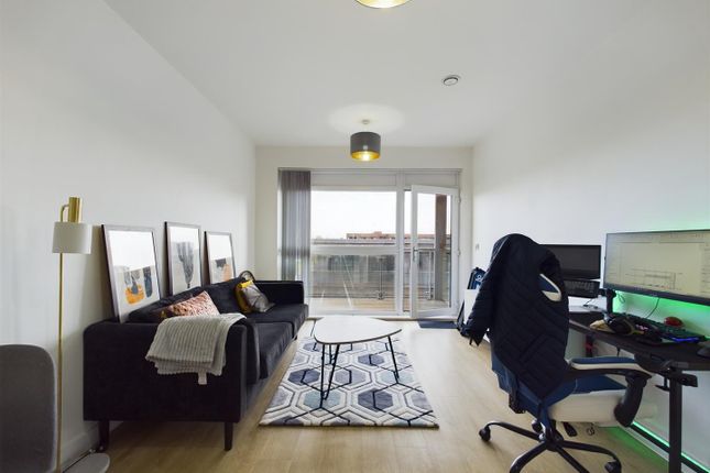The accommodation comprises a welcoming entrance hallway leading to a spacious lounge, featuring an electric fireplace with surround and a charming Juliette balcony overlooking the well-maintained communal gardens. Double doors open into a well-appointed kitchen fitted with coordinated units and integrated appliances, including an electric oven and hob, microwave, and extractor hood.