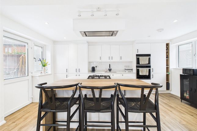 Double glazed window to rear elevation, Double glazed double doors to rear elevation, Range of base units with work surfaces above, Integrated fridge freezer, Integrated dishwasher, Sink drainer, Integrated oven with gas hob and extractor fan above, Chimney breast, Radiator, Partial laminate flooring, Floorboards.