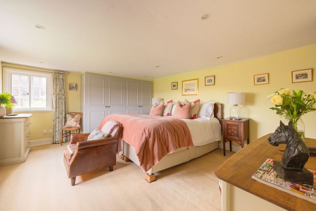 The interior sensitively combines period features like exposed beams and large fireplaces with modern comforts and enjoying very good ceiling heights. The light-filled principal reception rooms boast beautiful herringbone parquet flooring and large bay windows overlooking the gardens. Notable spaces include a drawing room with a classically-inspired loggia, a comfortable sitting room, and a very palacious triple-aspect garden room with a wonderful vaulted ceiling.